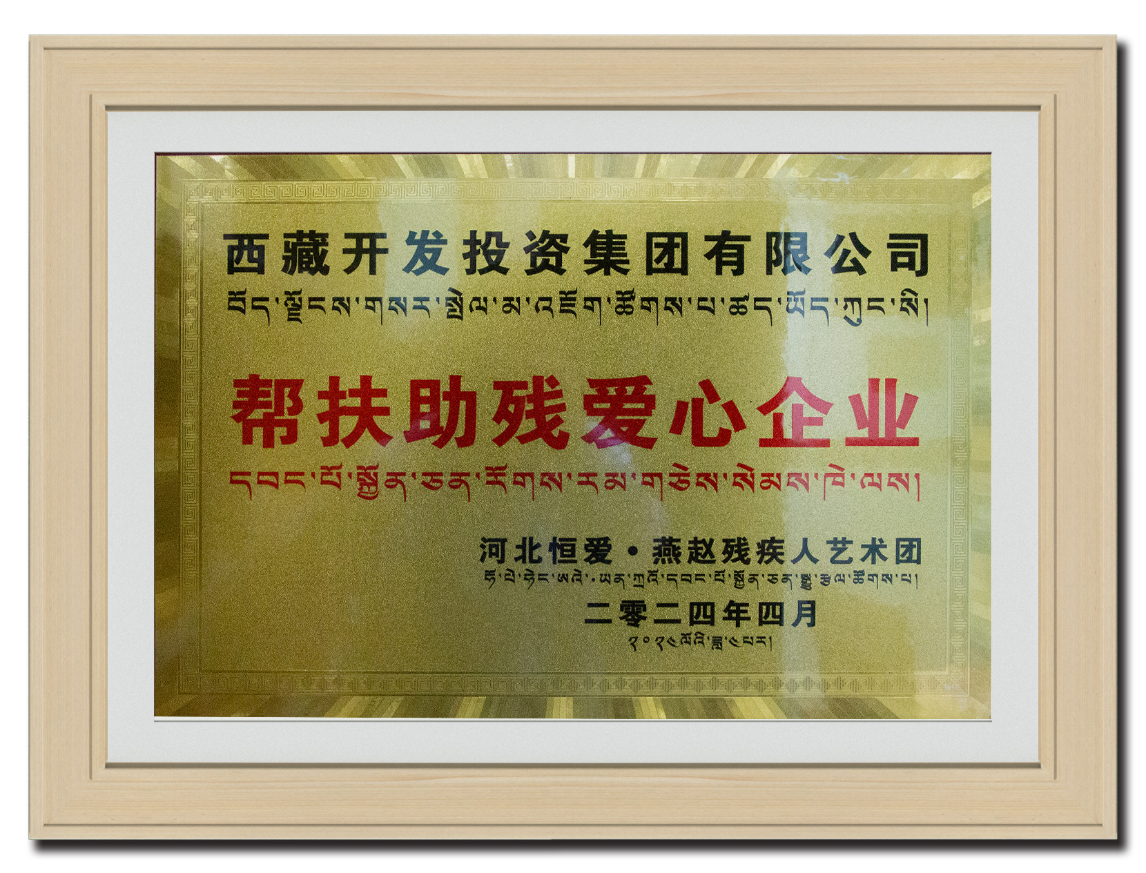 2024年4月榮獲幫扶助殘愛(ài)心企業(yè)獎(jiǎng)