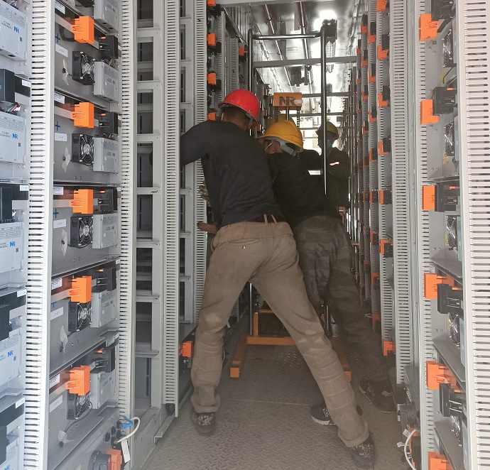 抓疫情防控是硬任務(wù),抓儲能建設(shè)亦是硬道理。9月3日,為保障儲能設(shè)備按期到廠,八宿光伏電站主動對接廠家,掌握設(shè)備運輸車輛軌跡,積極聯(lián)系各地防疫部門開具證明。自儲能項目開工以來,安排專人蹲守現(xiàn)場監(jiān)督儲能建設(shè),9月9日設(shè)備及配件陸續(xù)到廠后,及時成立驗收組對設(shè)備及配件進(jìn)行到廠驗收。9月17日第一批電池艙到廠后,八宿光伏電站開啟“白+黑”工作模式,完成設(shè)備吊裝,具備單體調(diào)試條件。目前八宿光伏電站土建施工、一體機吊裝已全部完成,預(yù)計9月底具備涉網(wǎng)試驗條件。