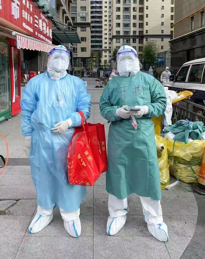積極參加社區(qū)疫情防控工作。為積極響應(yīng)區(qū)政府國資委《關(guān)于配合做好疫情防控工作的緊急通知》有關(guān)要求,置業(yè)公司丁宗平、張峰偉兩名青年職工,經(jīng)所在單位同意,并向集團公司疫情防控辦備案后,積極參加柳梧新區(qū)管委會組織的社區(qū)志愿服務(wù)活動,全身心投入體溫監(jiān)測、秩序維護、信息登記、防控科普、物資分發(fā)、環(huán)境消殺等工作,展現(xiàn)了開投青年的責任與擔當。