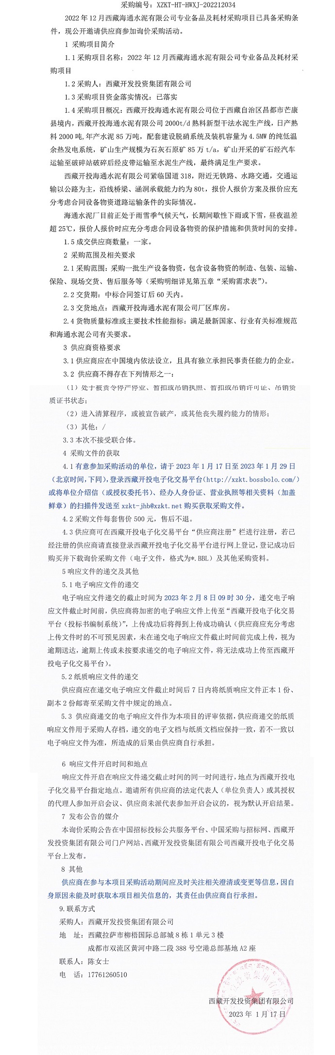 2022年12月西藏海通水泥有限公司專業(yè)備品及耗材采購(gòu)項(xiàng)目詢價(jià)就采購(gòu)公告