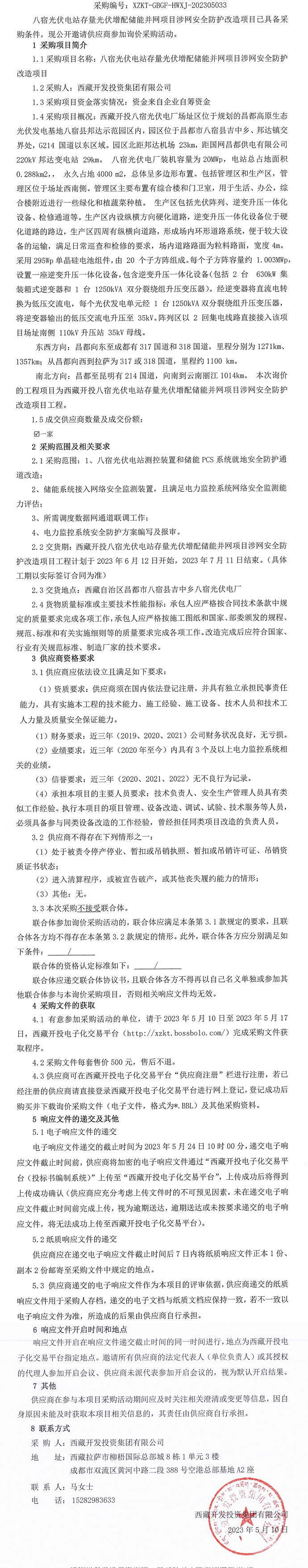 八宿光伏電站存量光伏增配儲能并網(wǎng)項目涉網(wǎng)安全防護(hù)改造項目詢價采購公告