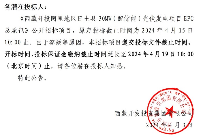 關于延長《西藏開投阿里地區(qū)日土縣30MW(配儲能)光伏發(fā)電