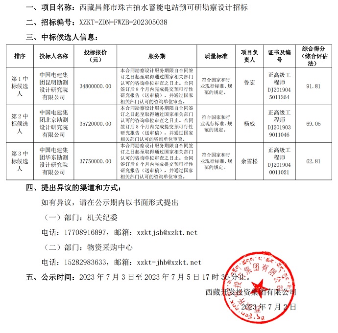 中標(biāo)候選人公示